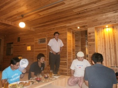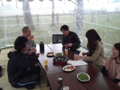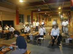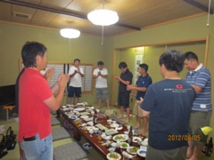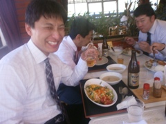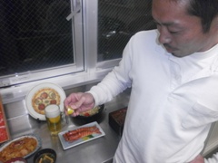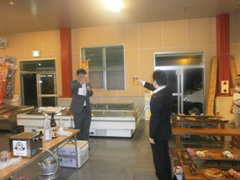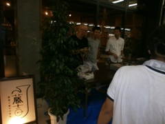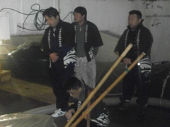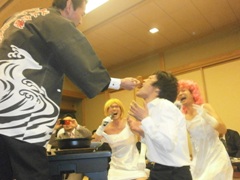 | 宮崎先輩と浜多先輩も参加 | 見事浜多先輩にワサビまきがw | ワクワクしている山形先輩 |