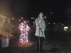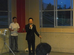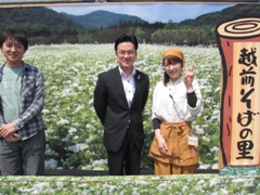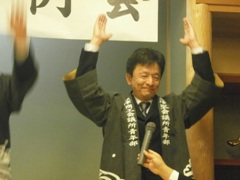 | 玉森さんによるお祭りPR | 牧野副会長も新たなお祭りをPR | 稗苗県議会議員の万歳 |