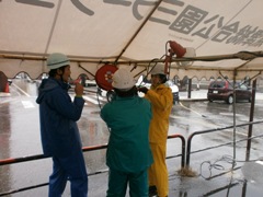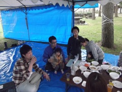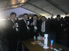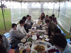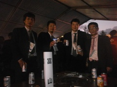 無事定刻に大懇親会会場へ☆ | 野外会場はあまり例がないようで、 盛大に開催されていました☆ |