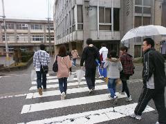 魚津城址に向かって 皆で徒歩移動 |