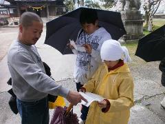 神社で宝探し 清高さん家族協力して探してました |