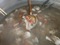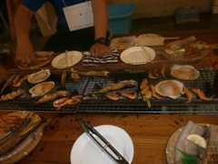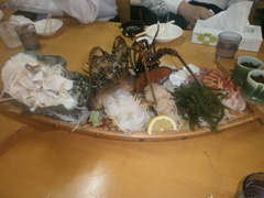 マキシ市場にて、夜光貝、伊勢海老の 活造りを堪能☆加藤監事夜光貝を絶賛 |