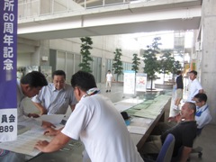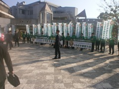 看板前にて。記念撮影。 | 式典風景。尾山会長のいつもの いい声が響きます☆ |