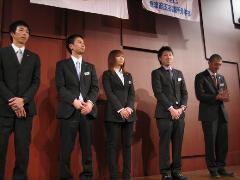 懇親会では、澤崎魚津市長をはじめ、たくさんのご来賓方が参加され、お祝いのお言葉を頂きました。また、卒業生の先輩方の挨拶があり、寂しくもありましたが、新しく加入した8名の会員がそれぞれ壇上で挨拶をし、
