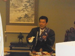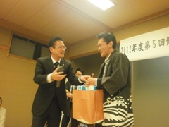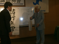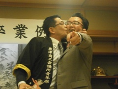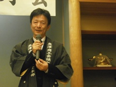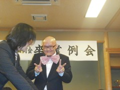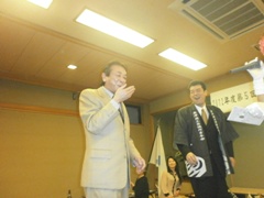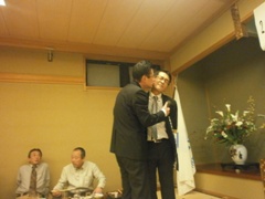 | 酒井渉外・広報委員会副会長の中締め | 大愛副会頭からの返礼 | 皆さんいい顔されています |