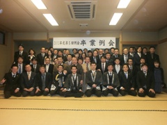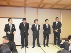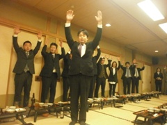 | 有磯次年度会長予定者の万歳返礼 | 皆で記念撮影です | 青年部に入会して初めての司会 村瀬君と小泉君お疲れ様でした |