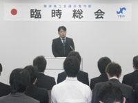 4月1日に魚津商工会議所青年部の定時総会が開催され、無事、第一号議案、第二号議案共に満場一致で承認されました。同時に島澤年度から森井新体制へとバトンタッチされ、新しく理事も発表されました。