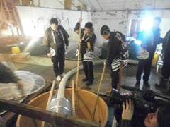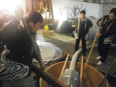 毎年恒例となりました、青年部プロデュースのお酒『純米吟醸じゃんと恋魚津』の仕込みを行いました。このお酒の仕込みは1997年より開始して今回で17回目、6石の限定醸造(1升瓶1.8l換算で600本、720mlで1500本)純米吟醸。今年度で青年部を卒業される加藤監事が、17年前に担当委員長として、地元魚津産のお米を使用する事に拘って開発の一人として大変に尽力され、魚津長引野営農組合の方々に協力していただき完成したお酒です。今年も7名の青年部メンバーが、美味しいお酒になってと願いながら仕込みを行いました。3月末前後より魚津市内の酒販売店で発売を開始。720ml 1,800円