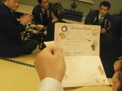 | 加藤先輩の奥さんからのラブレターを 会長時の元専務だった牧野君が代読 |