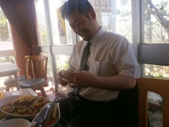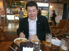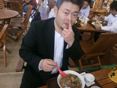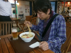 沖縄そばを堪能する ラーメン同好会会長(笑) |
