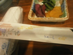 | 夕食〜沖縄郷土料理 | 箸袋に「うめ〜し」って 書いてありましたw |