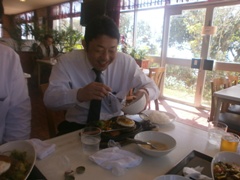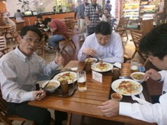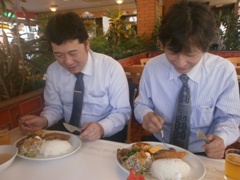 | 中村副会長はソーキそば♪ | 加藤監事、石川副委員長、有磯副会長 は、タコライス、そばセットを☆ |