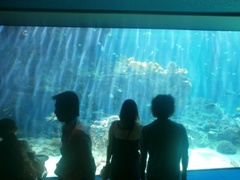 | ロコモコを堪能する有磯副会長 | ちゅらうみ水族館から見た景色☆ | すごく幻想的でした |