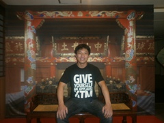 | 最終日、首里城へ | 玉座のレプリカで満足そうに 撮影される辻委員長w |